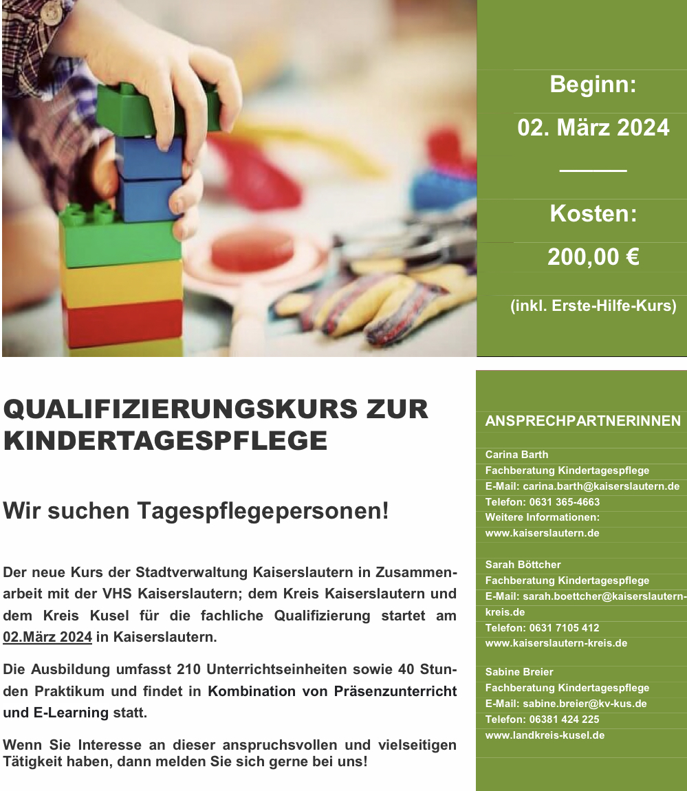 Neuer Qualifizierungslehrgang von Tagespflegepersonen der Stadt
