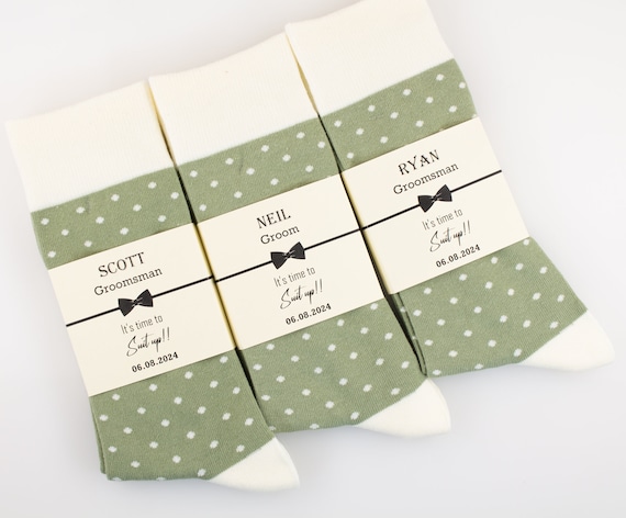 Groomsmen Socks, Sage Green and Ivory Polka Dot Socks, Custom