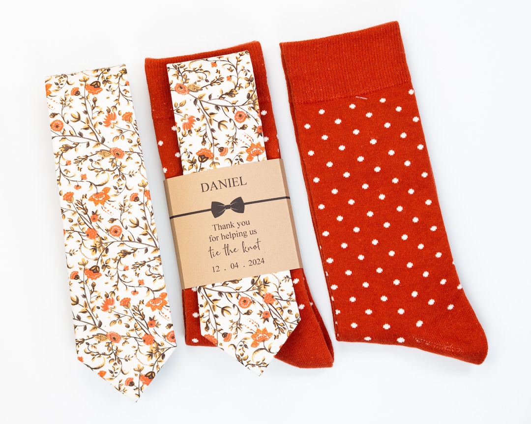 Burnt Orange Socks and Floral Tie Rustic Wedding Socks and Etsy